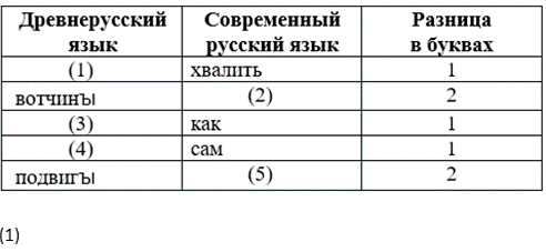 8. Начинающий лингвист Елисей составил таблицу, показывающую различие букв в словах древнерусского языка и современного русского. Вот что у него получилось.