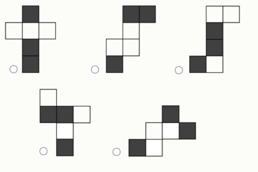 Задание 4. У Маши есть пять развёрток кубика. Из каких развёрток можно склеить куб, в котором три чёрные грани примыкают к одной вершине? Выберите все подходящие варианты: