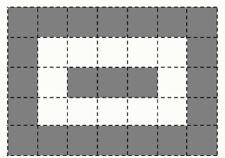 Задание 2. Вася взял белый прямоугольник 36×45 и начал его красить: каёмку толщиной в 1 клетку в чёрный цвет, следующую каёмку он оставил белой, затем снова чёрная каёмка и т. д. На рисунке показан аналогичный прямоугольник 5×7 .