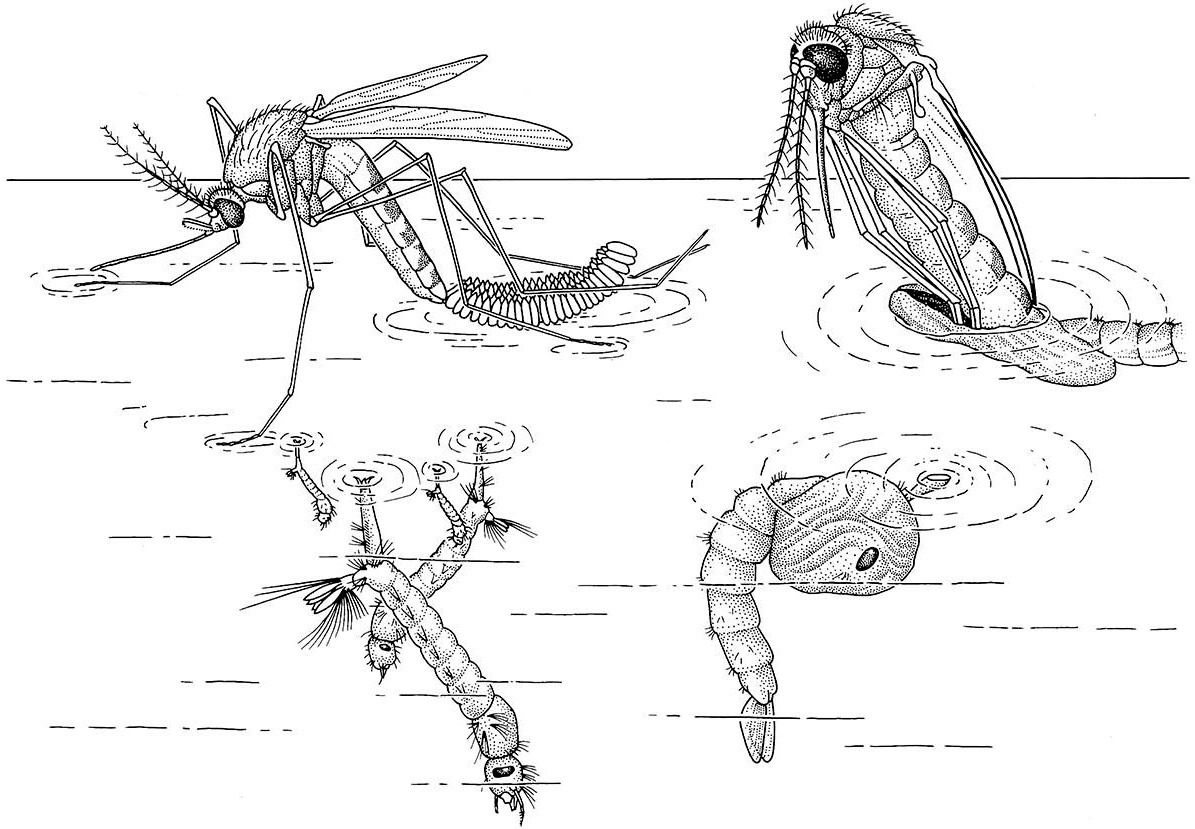 Для борьбы с комарами важно понимать, как проходит их развитие. Расположите по порядку события, происходящие в онтогенезе самки комара‑пискуна, начиная с образования зиготы.