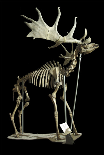 Задания 16: Дано изображение скелета самца ископаемого представителя семейства оленевых большерогого оленя (Megaloceros giganteus) из плейстоцена и раннего голоцена. В результате какого эволюционного процесса для самцов данного вида стали характерны огромные (до 4 м в размахе) рога?