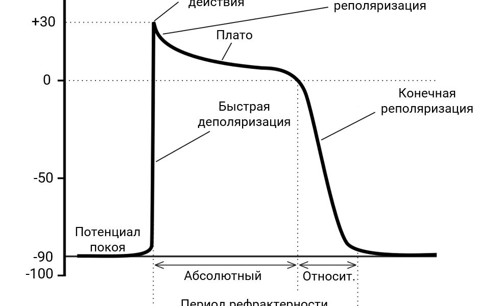 Задания 19: Изучите иллюстрацию потенциала действия кардиомиоцита.