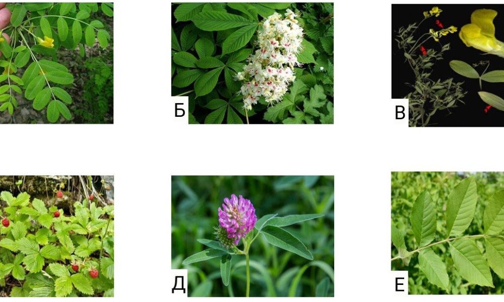 Установите соответствие между растениями и типами сложных листьев.