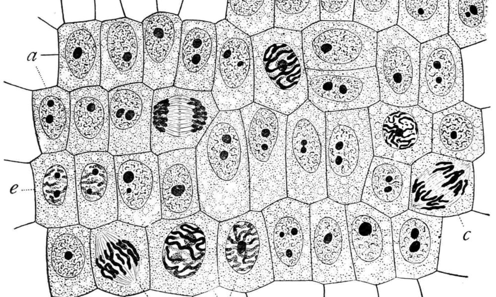 Рассчитайте митотический индекс для предложенного рисунка микропрепарата, сделанного Э. Улисоном в 1900 году. Ответ округлите до сотых.