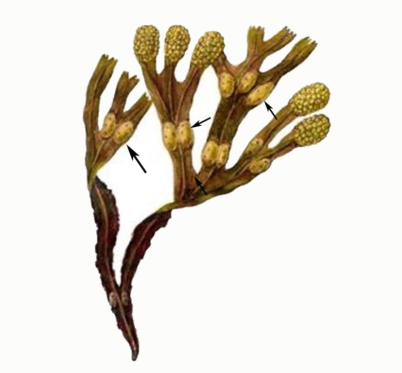 2. Какую функцию выполняют структуры, обозначенные на изображении таллома водоросли стрелками?