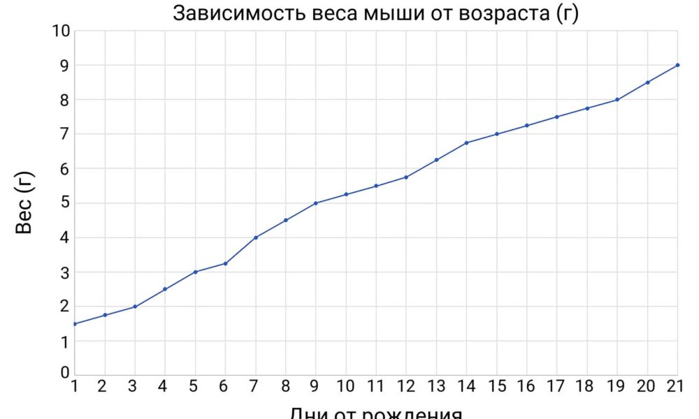 34. На графике изображена зависимость среднего веса мышат от их возраста.