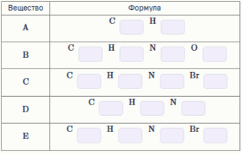 Задание 1. Ароматический углеводород A взаимодействует со смесью концентрированных азотной и серной кислот с образованием вещества B. Взаимодействие Bс цинком в бромоводородной кислоте даёт раствор соединения C с массовой долей брома 46.0 % . Добавление щёлочи к C приводит к образованию D , не содержащего элементы тяжелее 15 а. е. м. Продуктом реакции D с бромом является белый осадок E , содержащий в 3 раза больше атомов брома, чем в C . Расставьте индексы в молекулярных формулах веществ.