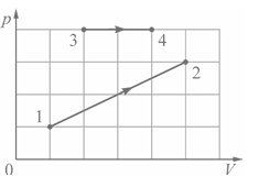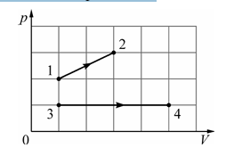 Задание 8: На pV-диаграмме показаны два процесса, проведённые с одним и тем же количеством разреженного кислорода. Чему равно отношение работ А34/А12, совершённых кислородом в этих процессах?