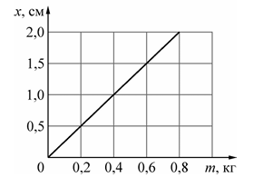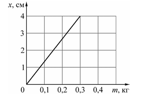 Задание 2: При определении жёсткости пружины ученик измерил зависимость величины удлинения x пружины от массы m подвешенного к ней груза (см. рисунок). Чему равна жёсткость этой пружины?
