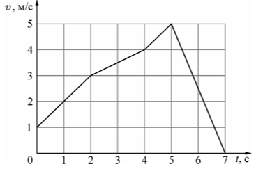 Задание 1: Материальная точка движется прямолинейно. На рисунке представлен график зависимости модуля скорости υ этой материальной точки от времени t. Определите максимальный модуль ускорения материальной точки за рассматриваемый промежуток времени.