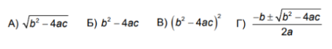 Задание 3. Чему равен дискриминант квадратного уравнения ax2 + bx + c = 0?